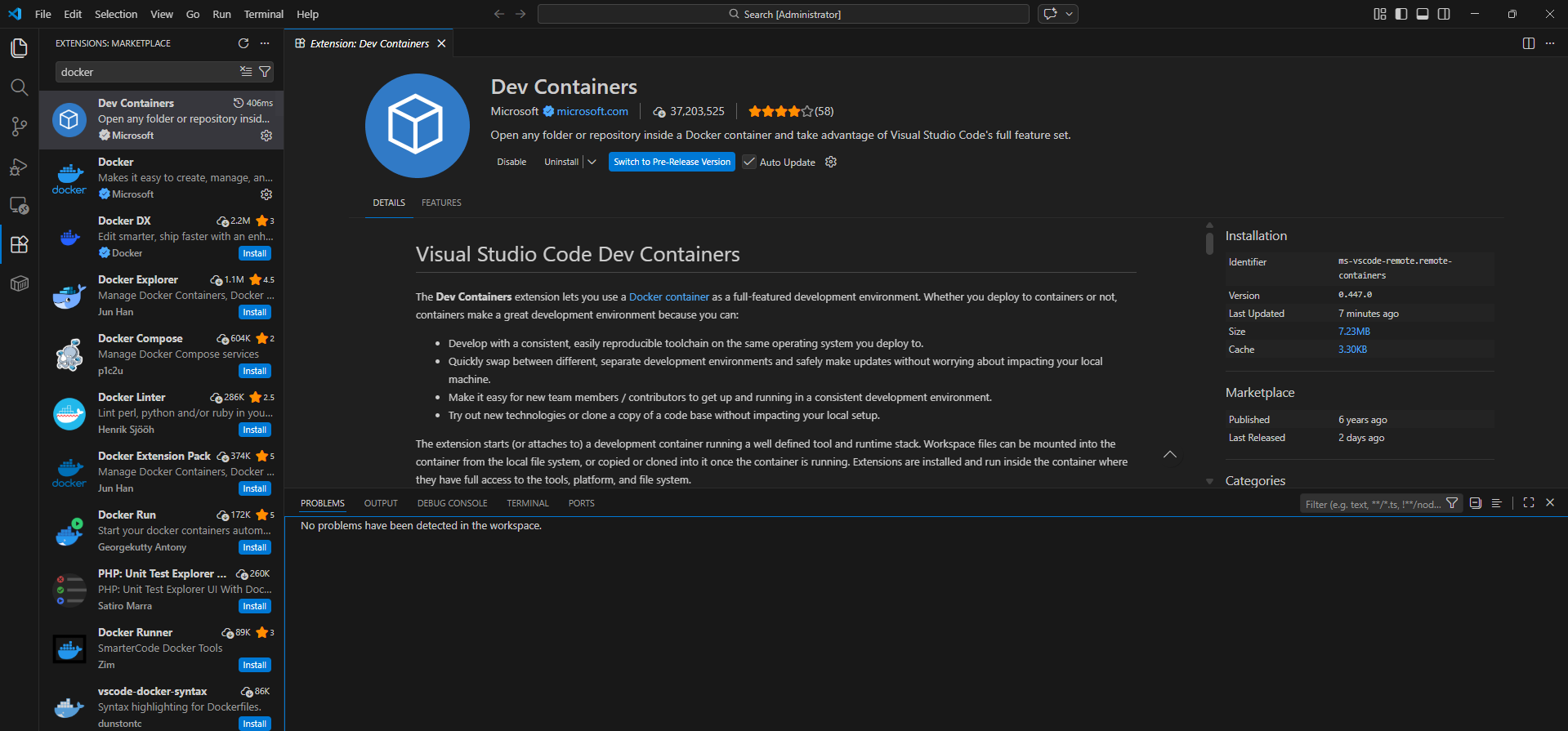 또 젬이 시키는대로, VS Code의 Extensions에서 Dev Containers 확장을 검색하여 설치했다.