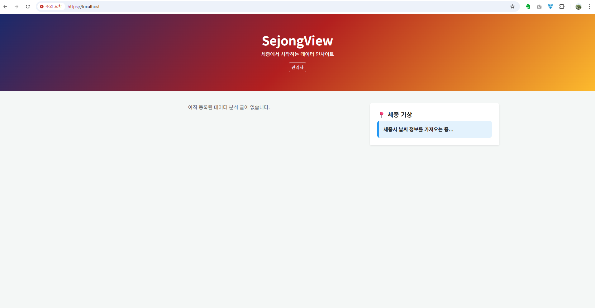 PS D:\...\sejongview> docker compose up -d --build(up은 '실행하라'는 의미, -d 는 백그라운드 실행, - -build는 Dockerfile을 읽어 새로운 이미지를 만들라는 의미다)